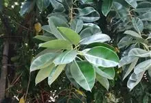 印度榕:乔木,高达20-30米,胸径25-40厘米;树皮灰白色,平滑。小枝粗壮。叶厚革质,长圆形至椭圆形,全缘,表面深绿色,光亮,背面浅绿色,侧脉多,不明显,平行展出;榕果成对生于已落叶枝的叶腋,卵…全部>>