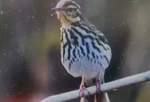 树鹨是小型鸣禽,外形和林鹨相似,体长15-16厘米。上体橄榄绿色具褐色纵纹,尤以头部较明显。眉纹乳白色或棕黄色,耳后有一白斑。下体灰白色,胸具黑褐色纵纹。野外停栖时,尾常上下摆动。…全部>>