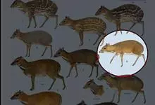 鼷鹿,别名小鼷鹿,共38个亚种。体形略比野兔大,体重1.3~2.0kg,体长420~630mm,肩高约200mm,是仅次于蹄兔目成员最小的有蹄类动物,也是鼷鹿科种体型最小的一种。面部尖长,无角,…全部>>