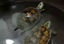 黑颈乌龟是龟鳖目淡水龟科乌龟属爬行动物;别名广东乌龟、广东草龟、黑点龟、黑颈水龟。黑颈乌龟体形较大,头较大,吻钝,略突出于上喙。头顶部黑色,侧面有黄绿色条纹;背甲黑色或棕褐色;中央有一条明显的脊棱,…全部>>