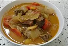 咖喱牛腩是一道菜品,制作原料有牛腩、白萝卜等,待牛腩将熟时,放入白萝卜片,炖煮后即可食用,功效是增强身体耐力,…
