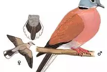 火斑鸠,是鸽形目鸠鸽科斑鸠属的鸟类动物。火斑鸠全长约21-24厘米,雄鸟头顶和后颈蓝灰,颏和上喉蓝白,后颈基有1道明显而狭窄的黑色半领圈;背、肩、翅上覆羽及下体均葡萄红,但下体色略浅,…全部>>