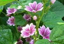 锦葵:二年生或多年生直立草本,高50-90厘米,分枝多,疏被粗毛。叶圆心形或肾形,具5-7圆齿状钝裂片,两面均无毛或仅脉上疏被短糙伏毛。花3-11朵簇生,小苞片3,长圆形疏被柔毛;花紫红色或白色,…全部>>