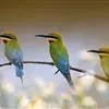 蓝颊蜂虎:是蜂虎科、蜂虎属的鸟类,共有2个亚种。体长27-33厘米,翼展46-49厘米,体重38-50克。嘴形细长而下弯,先端尖,…全部>>