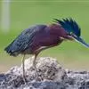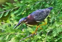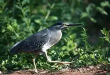 绿鹭:是鹳形目鹭科绿鹭属鸟类。体型小,头顶黑,枕冠亦黑色,上体蝉灰绿色,下体两侧银灰色;前额至后枕及冠羽墨绿色,眼后有一白斑,颊纹黑色;颚纹白色,后颈、颈侧和体侧烟灰色;背部披灰绿色矛状长羽,…全部>>