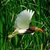 池鹭,是鹈形目鹭科池鹭属鸟类。繁殖期头及颈深栗色,胸酱紫色;非繁殖期背部褐色,头、颈、上胸部具褐色纵纹,下腹部及翼为白色;嘴基黄而尖端黑色,跗趾黄色。非繁殖期飞行时因白色的腹部和飞羽,易与白鹭混淆,…全部>>