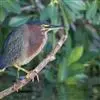 绿鹭:是鹳形目鹭科绿鹭属鸟类。体型小,头顶黑,枕冠亦黑色,上体蝉灰绿色,下体两侧银灰色;前额至后枕及冠羽墨绿色,眼后有一白斑,颊纹黑色;颚纹白色,后颈、颈侧和体侧烟灰色;背部披灰绿色矛状长羽,…全部>>
