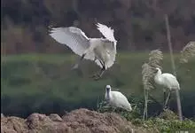 琵鹭,为6种长腿涉禽的统称。主要以虾、蟹、水生昆虫、昆虫幼虫、蠕虫、甲壳类、软体动物、蛙、蝌蚪、蜥蜴、小鱼等小型脊椎动物和无脊椎动物为食,偶尔也吃少量植物性食物。…全部>>