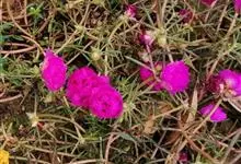 大花马齿苋:一年生草本,高10-30厘米。茎平卧或斜升,紫红色,多分枝,节上丛生毛。叶密集枝端,较下的叶不规则互生,叶片细圆柱形,无毛。花单生或数朵簇生枝端,直径2.5-4厘米,…全部>>