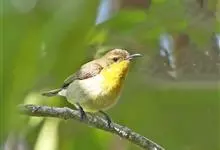 黄腹花蜜鸟是雀形目太阳鸟科花蜜鸟属鸟类。体型较小、喙略短而弯、腹部黄色。雄鸟繁殖季节颏及胸黑紫色并泛金属光泽,具有绯红色及灰色胸带,将上腹部黑色斑与前胸隔开,肩斑为橙黄色丝质羽,上体橄榄绿色,…全部>>