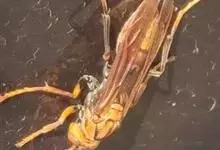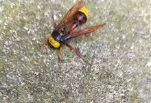 金环胡蜂是胡蜂科、胡蜂属昆虫。雌蜂体长约40毫米,工蜂体长25毫米,雌蜂体黑褐色,头部橙黄色,额片前缘弓形,中央凹,两边突出;触角12节,膝状,暗褐色;中胸背部中央有很细纵沟;翅膜质半透明,…全部>>
