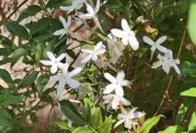 素馨花,木犀科素馨属多年生的攀援灌木植物。攀援灌木,小枝圆柱形,具棱或沟;叶对生,叶轴常具窄翼,小叶片卵形或长卵形;聚伞花序顶生或腋生,花序梗长,苞片线形,花萼无毛,裂片锥状线形,花冠白色,…全部>>