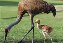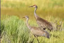 沙丘鹤别名棕鹤、加拿大鹤,是鹤形目鹤科鹤属大型涉禽。成鸟两性相似,雌鹤略小,眼先、前额和头顶裸露部分红色;上体石板灰色,翅覆羽较淡,羽缘锈棕色,羽轴深黑色;尾羽石板灰色,颈部灰蓝色,…全部>>