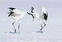 丹顶鹤:是鹤科、鹤属的一种大型涉禽,体长120-160厘米。颈、脚较长,通体大多白色,头顶鲜红色,喉和颈黑色,耳至头枕白色,脚黑色,站立时颈、尾部飞羽和脚黑色,头顶红色,…全部>>