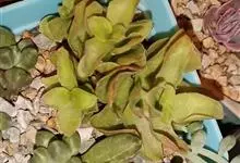 若歌诗是景天科青锁龙属的多肉植物。植株易丛生,茎淡绿色,细柱状,冷凉季节在阳光下会变红色;叶片肉质对生,叶片长可达3-3.5厘米,叶形像微型的汤匙,叶缘微黄或微红色,在充足的光照下,叶片会变得肥厚饱满,…全部>>