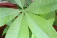 瓜栗 Walp. ),俗称发财树,木棉科小乔木,高4-5米,树冠较松散,幼枝栗褐色,无毛。小叶具短柄或近无柄。花单生枝顶叶腋;花梗粗壮,被黄色星状茸毛,脱落;萼杯状,近革质;花瓣淡黄绿色,狭披针形…全部>>