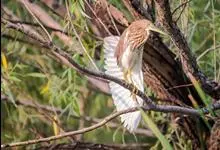 池鹭,是鹈形目鹭科池鹭属鸟类。繁殖期头及颈深栗色,胸酱紫色;非繁殖期背部褐色,头、颈、上胸部具褐色纵纹,下腹部及翼为白色;嘴基黄而尖端黑色,跗趾黄色。非繁殖期飞行时因白色的腹部和飞羽,易与白鹭混淆,…全部>>