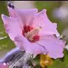 木芙蓉,锦葵科木槿属落叶灌木或小乔木。小枝上有细绒毛;叶片为卵状心形,托叶为披针形,常早落;花单生,花萼为钟形,花冠初为白色或淡红色,后逐渐变为深红色;果实为扁球形,有淡黄色的毛附着。花期8到10月。…全部>>