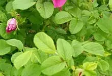 玫瑰:蔷薇科、蔷薇属的灌木;株高达2米;茎粗壮,丛生;小枝密生线毛,针刺和腺毛,有皮刺,淡黄色,被绒毛;小叶5枚,椭圆形或倒卵形,长1.5-4.5厘米,有尖锐锅齿,上面无毛,叶脉下陷,有褶皱,…全部>>