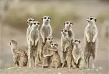 狐獴,是食肉目獴科狐獴属小型哺乳动物。狐獴的眼睛周围有黑色块,新月型的耳朵,修长的躯干和四肢,有着有力、弯曲的爪子,尾巴长细并尖尖延伸到端点,在末端的端点都为黑色。直立时狐獴会用尾巴支撑来保持平衡。…全部>>