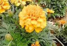 万寿菊是菊科万寿菊属一年生草本植物,别名孔雀菊、缎子花、臭菊花、西番菊、红黄草、小万寿菊、臭芙蓉、孔雀草。万寿菊茎近基部分枝。叶羽状分裂,长5-10厘米,宽4-8厘米,裂片长椭圆形或披针形,具锐齿,…全部>>