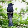 乌鹃:是杜鹃科、乌鹃属的小型鸟类,体长23-28厘米,通体黑色,尾呈浅叉状,尾下覆羽和外侧尾羽具白色横斑,在黑色的尾部极为醒目。下体黑色,微带蓝色或辉绿色。虹膜褐色或绯红色,嘴黑色,脚灰蓝色。…全部>>