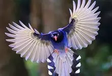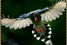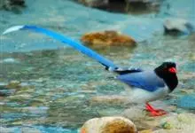 台湾蓝鹊:体长64至65厘米,翼展18至21厘米,尾长约40厘米,尾羽长占了总体长的三分之二。头、脸、颈、喉、胸都是黑色,黄色的眼珠包围黑色的瞳孔,鲜红色的鸟喙、双脚,…全部>>