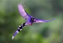 蓝绿鹊:中型鸟类,共有5个亚种。体长36-38厘米。尾长,嘴、脚红色。通体羽色主要为草绿色,宽阔的黑色贯眼纹向后延伸到后颈,在绿色的头侧极为醒目。两翅栗红色,内侧飞羽具黑色次端斑和白色尖端。尾绿色,…全部>>
