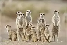 狐獴,是食肉目獴科狐獴属小型哺乳动物。狐獴的眼睛周围有黑色块,新月型的耳朵,修长的躯干和四肢,有着有力、弯曲的爪子,尾巴长细并尖尖延伸到端点,在末端的端点都为黑色。直立时狐獴会用尾巴支撑来保持平衡。…全部>>