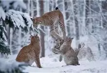 欧亚猞猁,拉丁名为Lynx lynx,也可直接称为猞猁,猫科猞猁属动物,别称为林㹭、猞猁狲、马猞猁、乌猞猁、大山猫、雪猁等。欧亚猞猁体长85~110厘米,尾长约为体长的1/3。雌性体重13~21千克,…全部>>