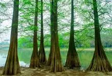 落羽杉 Rich.),杉科落羽杉属木本植物。树干尖削度大,基部通常膨大,具膝状呼吸根,树皮棕色,裂成长条片;一年生小枝褐色,侧生短枝;叶线形;球果具短柄,熟时淡褐黄色,被白粉;花期3月;球果10月成熟。…全部>>