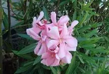 夹竹桃,又名红花夹竹桃、欧洲夹竹桃,是夹竹桃科夹竹桃属的一种常绿直立大灌木,枝条灰绿色,含水液。叶披针形,3叶轮生。聚伞花序顶生,花冠粉红至深红色,花冠漏斗状,有特殊香味。蓇葖果,圆柱形。种子长圆形,…全部>>