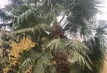 棕榈 H. Wendl.)是棕榈科棕榈属常绿乔木,树干圆柱形;叶片近圆形,叶柄具细圆齿;花小黄绿色,卵球形,组成分枝或不分枝的肉穗花序,花序大型多分枝;果实阔肾形,有脐和白粉,…全部>>