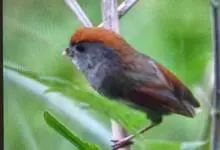 棕脸鹟莺:体长10厘米,是一种色彩亮丽而有特色的莺鸟。头栗色,具黑色侧冠纹。上体绿,腰黄色。下体白,颏及喉杂黑色点斑,上胸沾黄。与栗头鹟莺的区别在头侧栗色,白色眼圈不显著且无翼斑。…全部>>