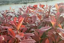 红叶石楠 是蔷薇科,石楠属杂交种,为常绿小乔木或灌木,乔木高可达5米、灌木高可达2米。叶片革质,长圆形至倒卵状、披针形,叶端渐尖,叶基楔形,叶缘有带腺的锯齿,花多而密,复伞房花序,花白色,梨果黄红色,…全部>>