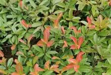 红叶石楠 是蔷薇科,石楠属杂交种,为常绿小乔木或灌木,乔木高可达5米、灌木高可达2米。叶片革质,长圆形至倒卵状、披针形,叶端渐尖,叶基楔形,叶缘有带腺的锯齿,花多而密,复伞房花序,花白色,梨果黄红色,…全部>>