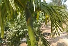 槟榔,是木兰纲、初生目、棕榈科、槟榔属常绿乔木,茎直立,乔木状,高10多米,最高可达30米,有明显的环状叶痕,雌雄同株,花序多分枝,子房长圆形,果实长圆形或卵球形,种子卵形,花果期3-4月。…全部>>