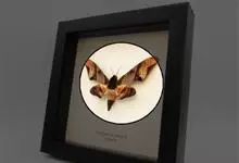 鬼脸天蛾,是鳞翅目天蛾科面形天蛾属动物。成虫翅展100~125毫米,体黑褐色;胸背有骷髅形斑纹;卵圆球形,直径约2毫米,淡黄绿色,表面光滑;老熟幼虫体长70~90毫米,蛹体长约56毫米;前翅为褐色,…全部>>