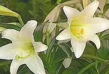 麝香百合:在中国台湾亦称铁炮百合。鳞茎球形或近球形,高2.5-5厘米;鳞片白色。茎高45-90厘米,绿色,基部为淡红色。叶散生,披针形或矩圆状披针形,两面无毛。花单生或2-3朵;花喇叭形,白色,筒外…全部>>