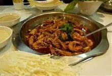 油焖虾是一道色香味俱全的传统名肴,属于鲁菜系四大代表菜之一,主要食材是渤海湾产对虾,主要烹饪工艺是炒焖。菜品色泽枣红亮丽,味香飘逸,鲜嫩微甜,油润适口,是著名的美味佳肴。全部>>