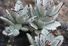 褐斑伽蓝是景天科、伽蓝菜属多年生肉质草本植物或小灌木。全株灰白色,密布白色茸毛。叶片长卵形,上半部具有齿状叶缘,叶缘处有褐色斑点;叶序对生或以近轮生的方式紧密排列。花期为春、夏季,…全部>>