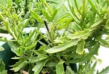 伽蓝菜是景天科伽蓝菜属植物。多年生草本,高20-100厘米。叶对生,中部叶羽状深裂,全长8-15厘米,裂片线形或线状披针形。聚伞花序排列圆锥状,长10-30厘米;苞片线形。花期3月。…全部>>