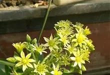 东南景天是景天科、景天属植物。多年生草本。茎斜上,单生或上部有分枝,高10-20厘米。叶互生,下部叶常脱落,上部叶常聚生,线状楔形、匙形至匙状倒卵形。聚伞花序宽5-8厘米,有多花;苞片似叶而小;花无梗,…全部>>