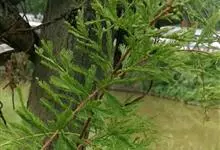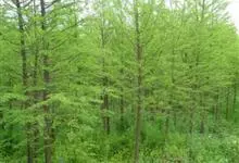 落羽杉 Rich.),杉科落羽杉属木本植物。树干尖削度大,基部通常膨大,具膝状呼吸根,树皮棕色,裂成长条片;一年生小枝褐色,侧生短枝;叶线形;球果具短柄,熟时淡褐黄色,被白粉;花期3月;球果10月成熟。…全部>>