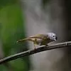 黄喉雀鹛是雀眉科、拟希鹛属小型鸟类,体长11-12厘米。头顶浅黄色具黑色鳞状斑,头顶两侧各有一道黑色侧冠纹,眉纹浅黄色、长而宽阔。上体灰绿色,两翅和尾褐色而具浅黄色窄缘。下体淡黄色。特征明显,…全部>>