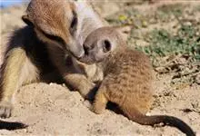 狐獴,是食肉目獴科狐獴属小型哺乳动物。狐獴的眼睛周围有黑色块,新月型的耳朵,修长的躯干和四肢,有着有力、弯曲的爪子,尾巴长细并尖尖延伸到端点,在末端的端点都为黑色。直立时狐獴会用尾巴支撑来保持平衡。…全部>>