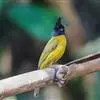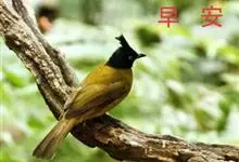 黑冠黄鹎:体长18-21厘米,是一种中等体型偏黄色鹎。整个头、颈、颏、喉黑色,头顶有显著直立的羽冠,黑色,上体褐橄榄黄绿色,下体橄榄黄色。虹膜偏红;嘴及脚黑色。…全部>>