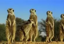 狐獴,是食肉目獴科狐獴属小型哺乳动物。狐獴的眼睛周围有黑色块,新月型的耳朵,修长的躯干和四肢,有着有力、弯曲的爪子,尾巴长细并尖尖延伸到端点,在末端的端点都为黑色。直立时狐獴会用尾巴支撑来保持平衡。…全部>>