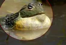 牛蛙,是蛙科、牛蛙属的养殖水产品动物,鸣声很大,远闻如牛叫而得名。牛蛙个体硕大,雌蛙体长达20厘米,雄蛙18厘米,最大个体可达2千克以上。头部宽扁,口端位,吻端尖圆面钝眼球外突,分上下两部分,…全部>>