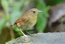 白喉短翅鸫是鹟科、短翅鸫属小型鸟类,体长12-13厘米。上体锈褐或橄榄褐色,眼上方有1-2枚白羽,颏、喉纯白色,胸、腹亦白色,但羽缘浅褐色。虹膜暗褐色,嘴暗褐色,下嘴较淡,脚淡褐色、肉色或暗紫肉色。…全部>>